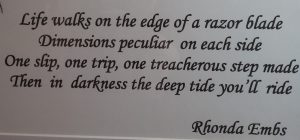 Wall hanging of original poem “In Darkness I SIng”