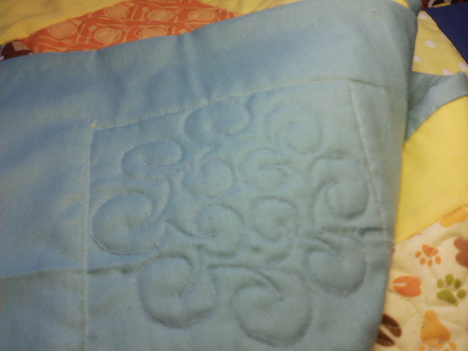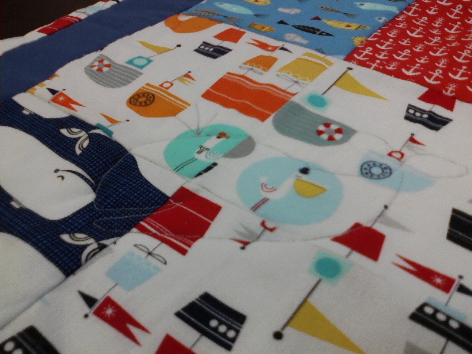 This one I quilted using a whale design taken off the fabric.