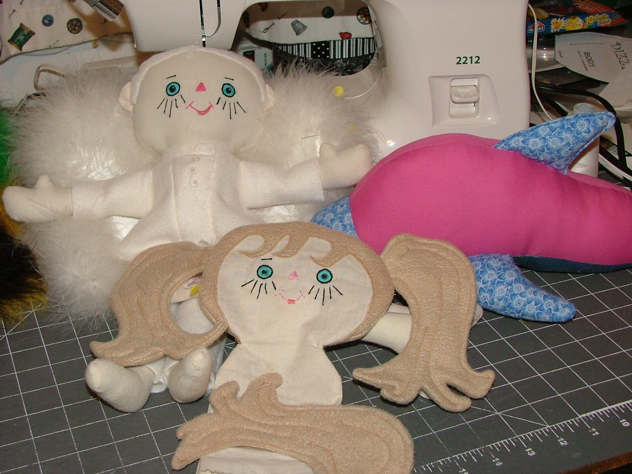more angel legs and one additional hair piece for another doll that is cut out and waiting for hair.