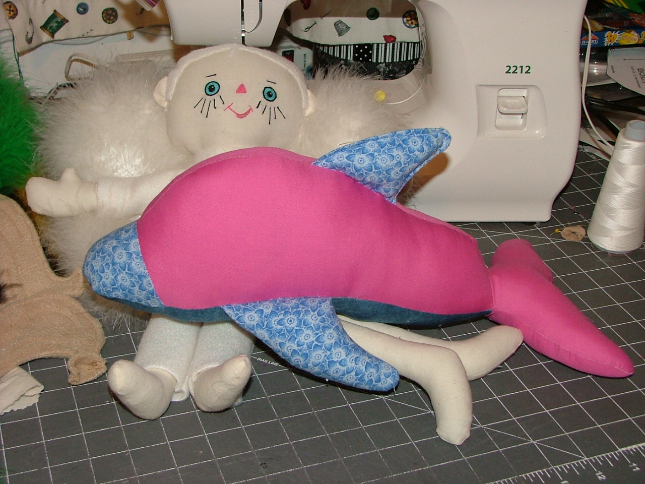 dolphin (pattern by funkyfriendsfactory) almost completed (still need eyes and blow hole) and 3 others cut out and ready to assemble (2 in blues and one in pinks)